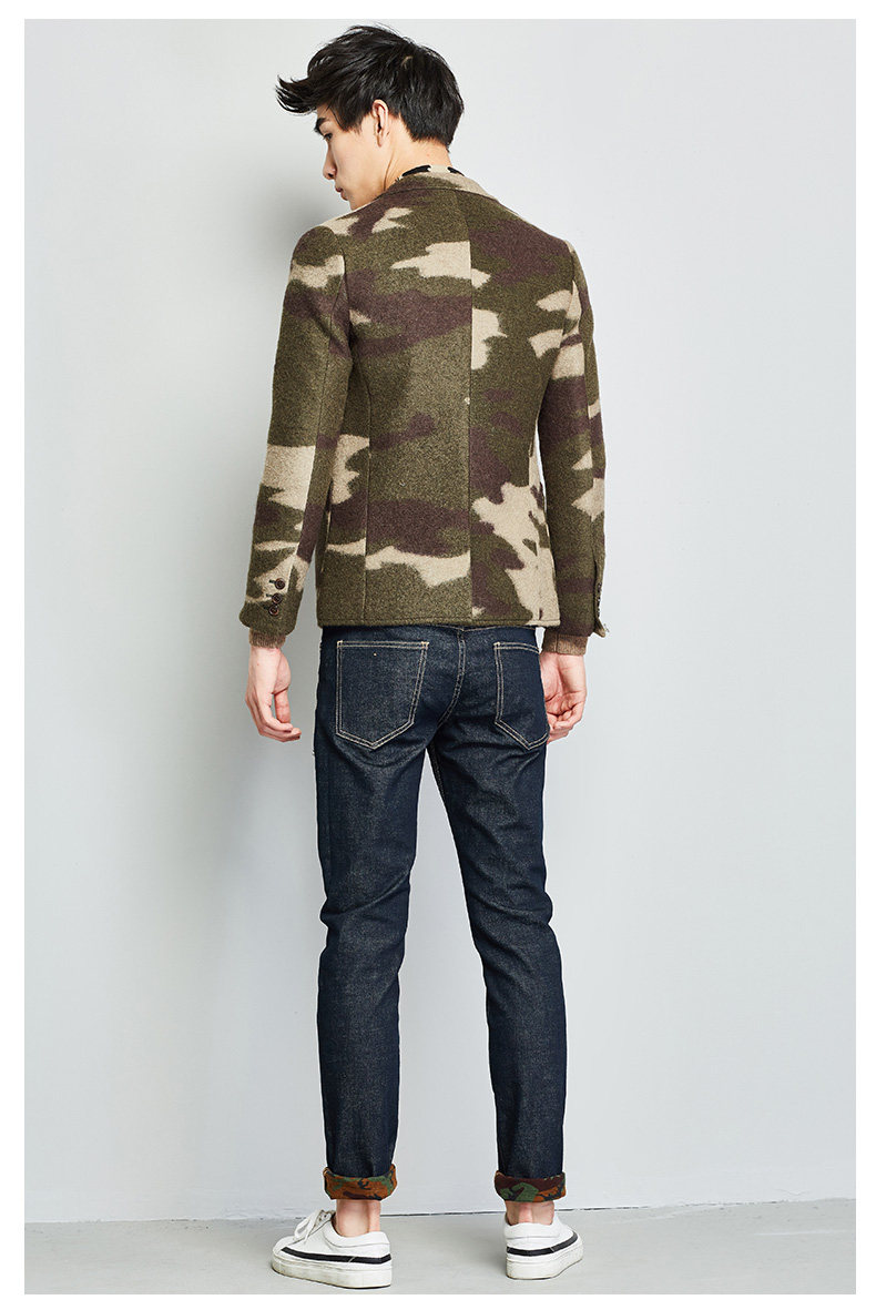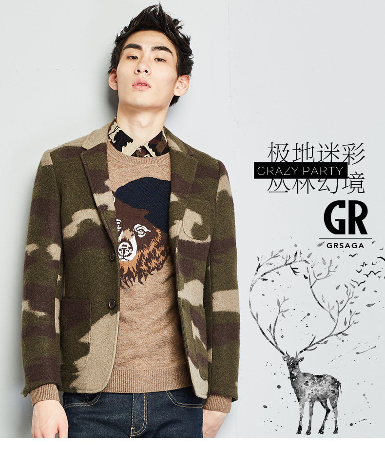 GRSAGA男装军外套男修身军装西服男迷彩外套羊毛保暖上装潮款西装