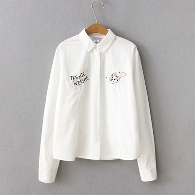 春季刺绣小熊打折促销 2018春季女装软妹可爱卡通小熊刺绣蓝色松紧