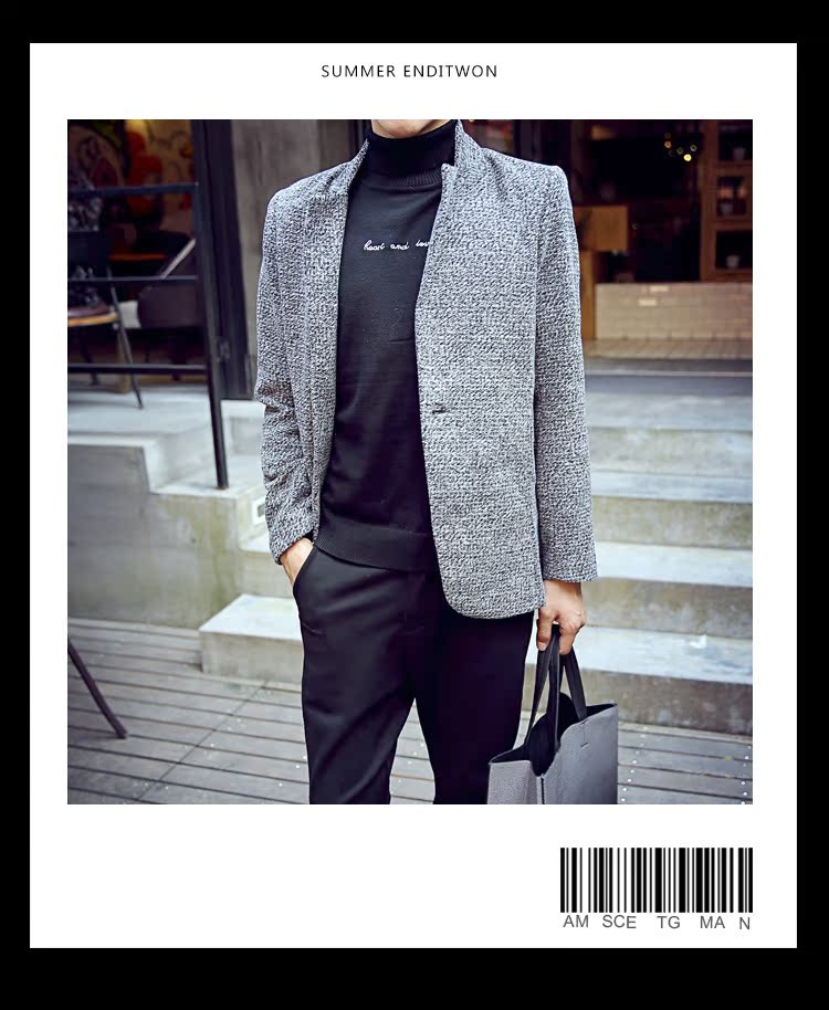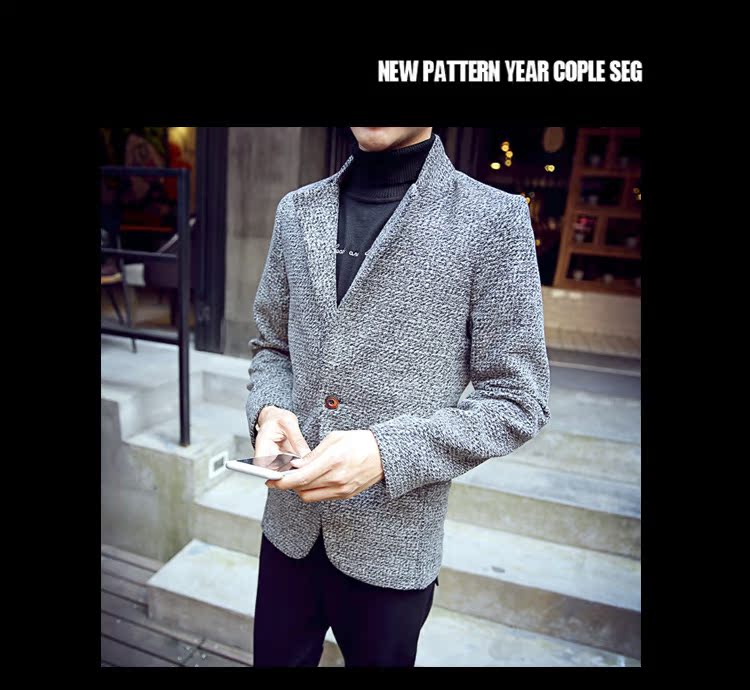 015冬季新款男士西装领毛呢大衣外套中长款纯色韩版修身风衣外套