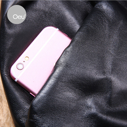 OEU连帽皮风衣外套2018新款 真皮皮衣气质 春季女真皮羽绒服女长款