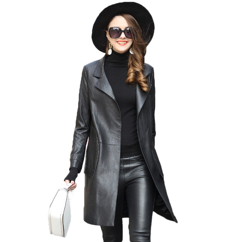 绵羊皮泡皮单皮风衣外套 诗茗2018春装 欧美真皮皮衣女中长款 新款