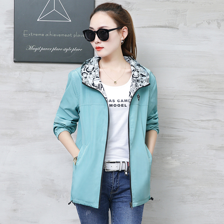 2018春秋新款时尚休闲韩版薄款三条杠连帽短款夹克衫风衣短外套女-