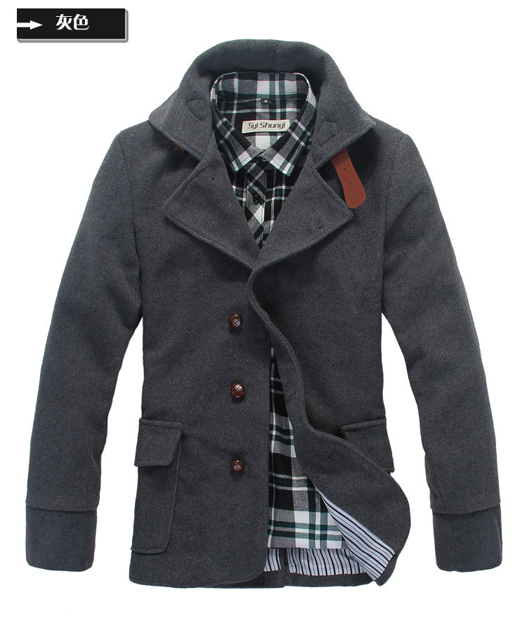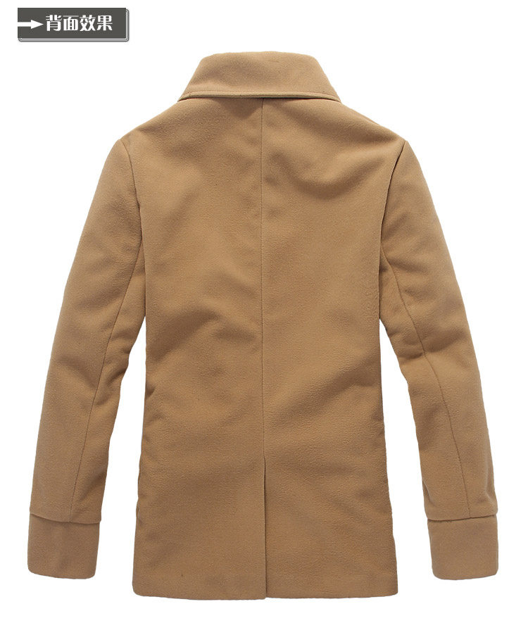 2014秋冬装男士风衣厚外套 韩版潮男式修身休闲 毛呢料大衣藏青