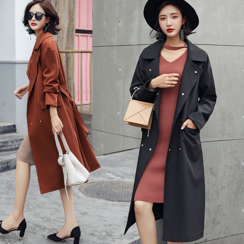 2018春秋季新款韩版宽松气质淑女双排扣风衣女中长款过膝百搭外套-