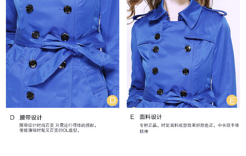 女新款韩版修身双排纽扣长款风衣外套 亮深蓝 怎么样 1号店的价格走