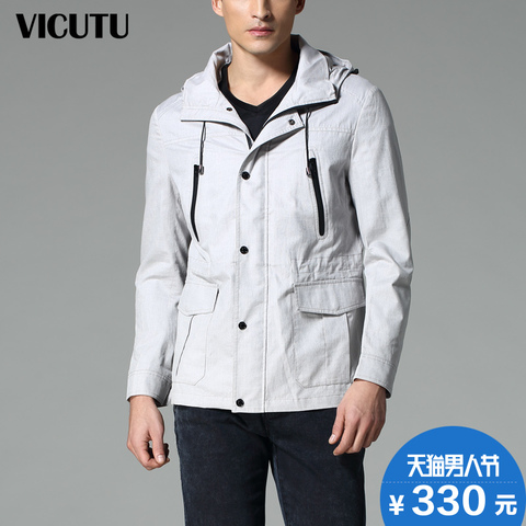 威可多VICUTU 男士商务休闲 春装立领单排扣风衣VRS13142793 灰白