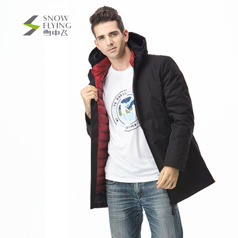 雪中飞户外新款男式中长款可脱卸内胆加厚羽绒服风衣A1621FY091