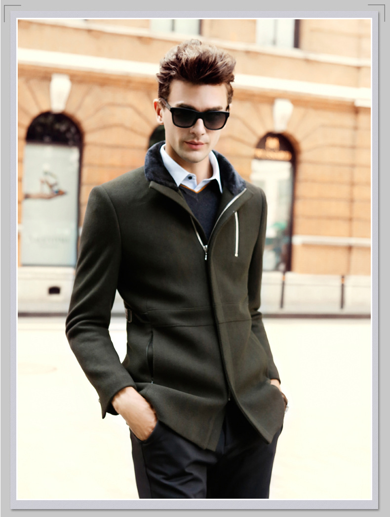 男装羊毛呢大衣男式中长款呢子衣毛领男士风衣羊毛大衣男外套