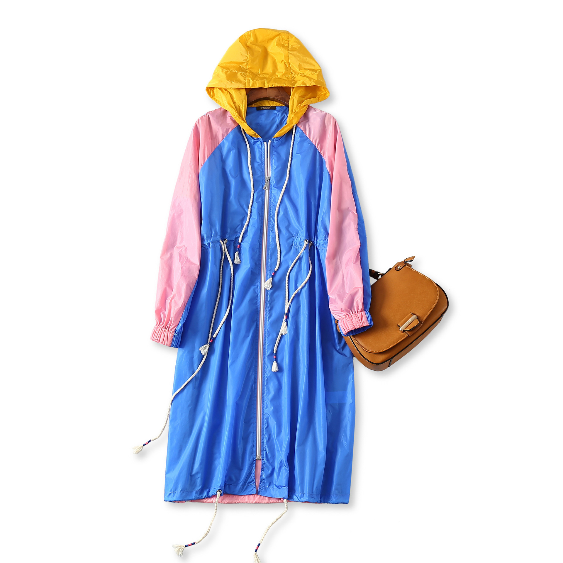18夏季新品 时髦有范 时尚拼色 超薄透气长款连帽防晒衣风衣外套-时髦","ldata":"1528494414