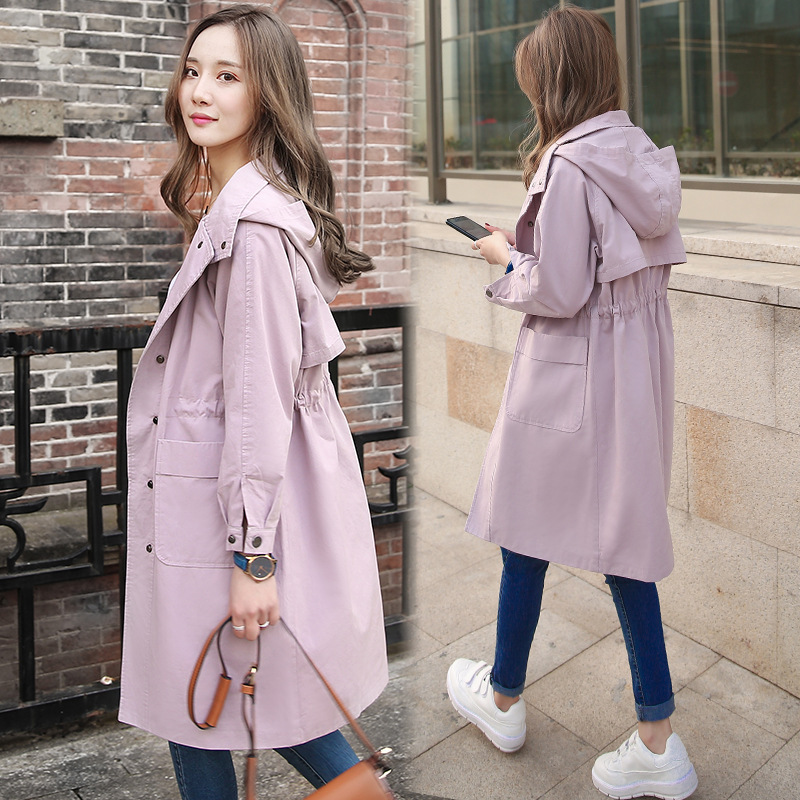 中长款风衣 2018春季新款韩版文艺复古女装长袖连帽中长款 阿里巴巴