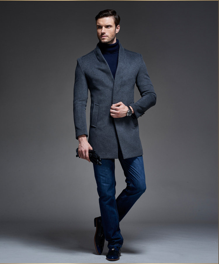 高端英伦羊毛呢大衣男中长款韩版商务休闲2015立领秋冬季风衣外套