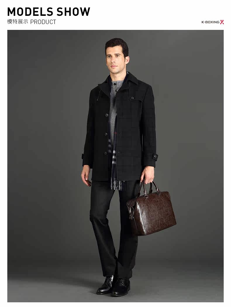 劲霸风衣2014秋冬装男式正品中长款翻领羊绒外套 男毛呢休闲外套 中
