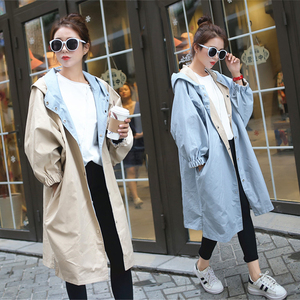 016秋季外套卡其色风衣女中长款学院潮秋装韩版连帽宽松学生