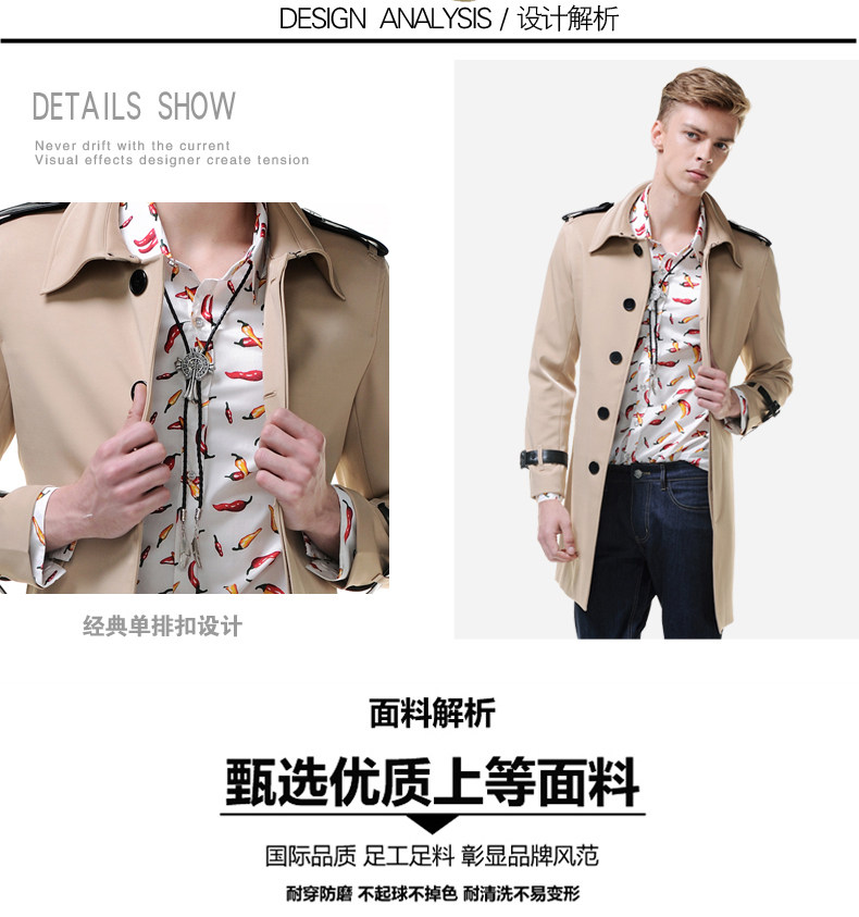 男装新品 独特暗门襟 英伦风时尚韩版修身长款风衣