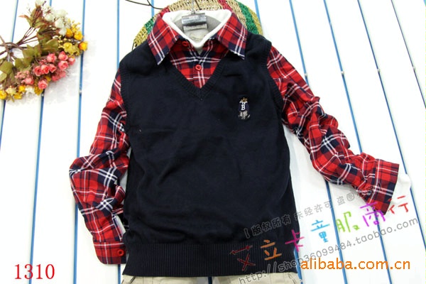 童毛衣 童装 批发 英伦风衬衫式假两件薄款儿童毛衣小熊款1309 中版