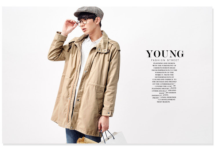 016春装新款风衣 男可拆卸帽子中长款风衣