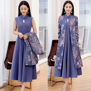 毛呢套装女2018春装新款中长款毛呢大衣时尚优雅气质裙子两件套潮