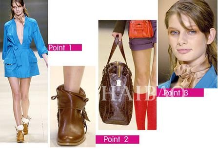 Point 3 丝巾→小巧的单色丝缎丝巾,随意的挽在脖颈间,充满优雅的女人味儿;