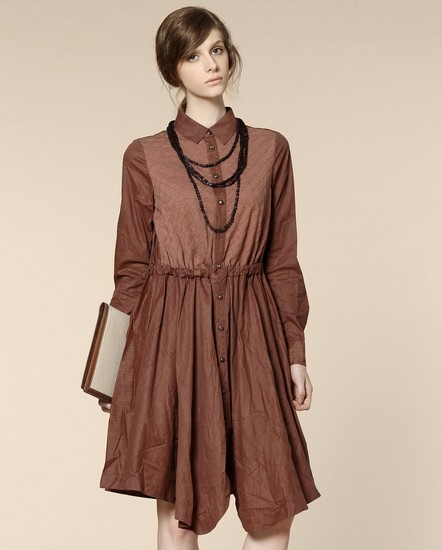 09 好喜欢这样的色调和这样的下摆,乍看像一件长款衬衫,当然也确实可以搭配丝袜或紧身裤当上衣穿。腰部的抽褶设计衬托出美轮美奂的下摆形象,配上那不规则的剪裁更显唯美知性。